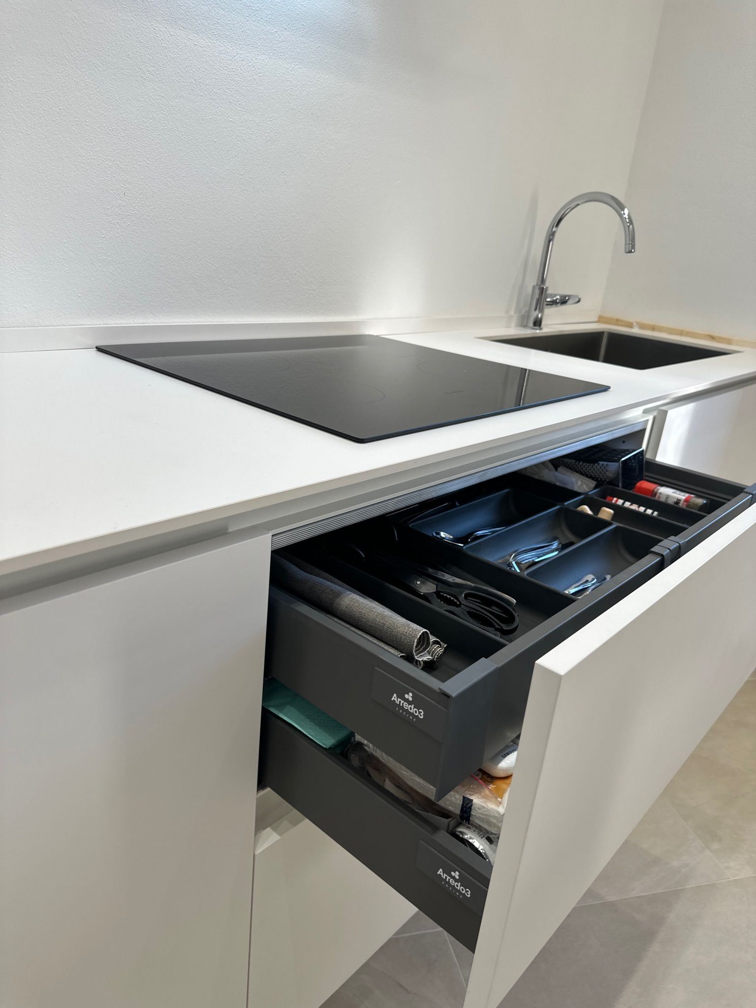 La cucina moderna è dotata di ogni comfort, inclusi un piano cottura ad induzione. 🍳
