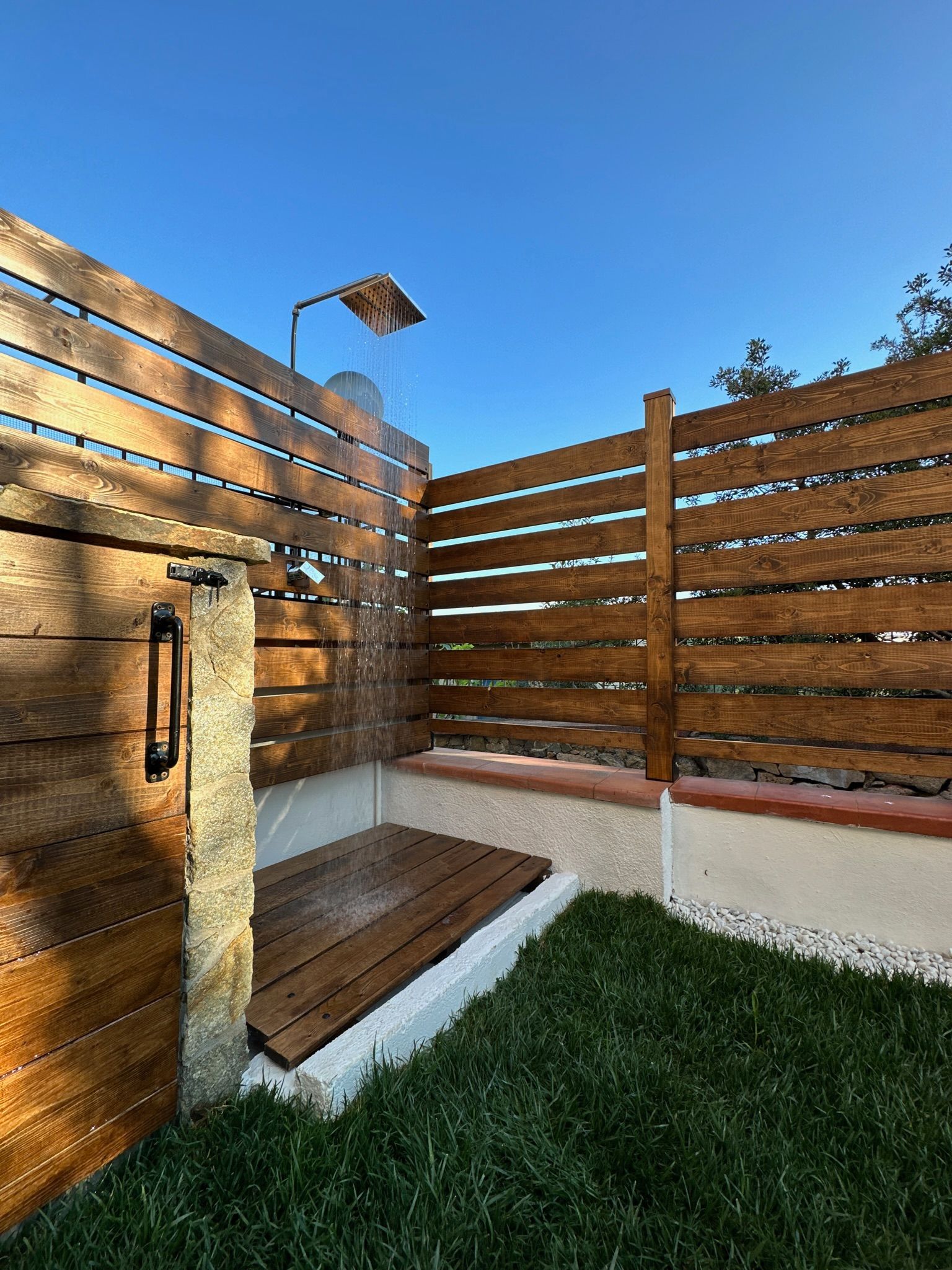 Troverete una doccia con acqua calda, perfetta per rinfrescarsi dopo una giornata al mare.